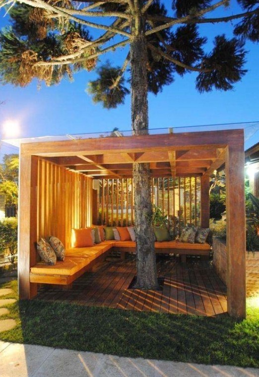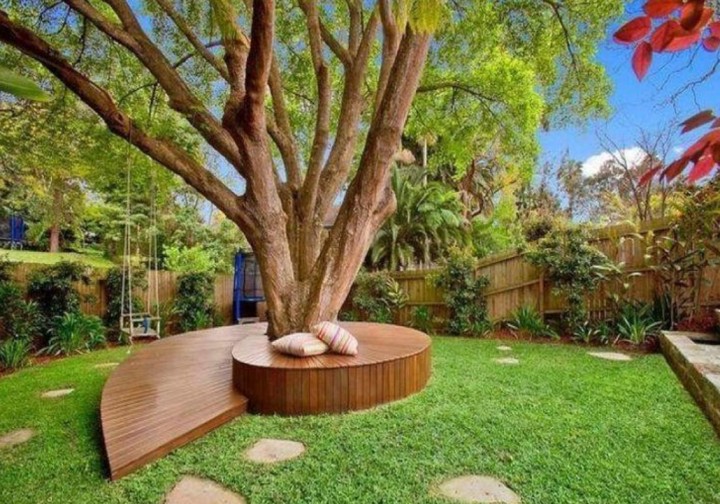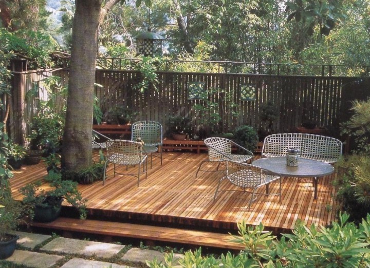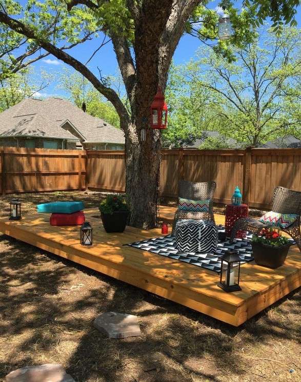 利用地台的可调整性,或大或小,都可以满足日常的使用需求。遇到小院子,可以如如上图这样,树下作为休闲区也是很好的。结合草地一起使用,这简直不要太爽了。