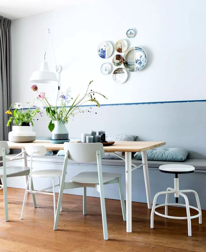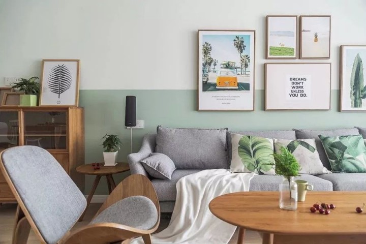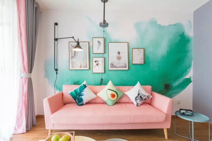 除此以外,撞色拼接、渐变晕染等更有层次美感的墙面设计,也给人一种眼前一亮的感觉,令家居更显文艺情调。