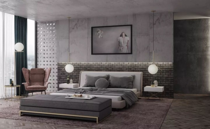 而在工业质感的卧室背景墙中,巧妙地利用自然光线和人造光源,对空间亮度加以提升,也会令温暖调性无限升华,让空间冷暖相宜,具备应有的活力。