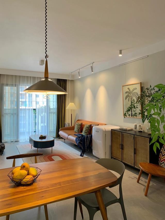 没有选择基本款的玻璃推拉门,而是选择了推拉门,让门扇更宽,空间融合更明显,看起来也更通透舒适。