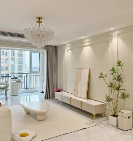 配色上,建议 “大面积主色 + 小面积撞色”。全屋大面积用奶油主色,比如墙面刷奶白色,顶面选稍浅一度的同色系,避免 “头重脚轻”;局部可以用低饱和色系点缀,比如卧室背景墙刷浅奶茶色,儿童房加一点淡粉色,既能丰富层次,又不会破坏整体温柔感。记住,撞色面积别超过墙面的 10%,否则会打乱奶油风的和谐感。