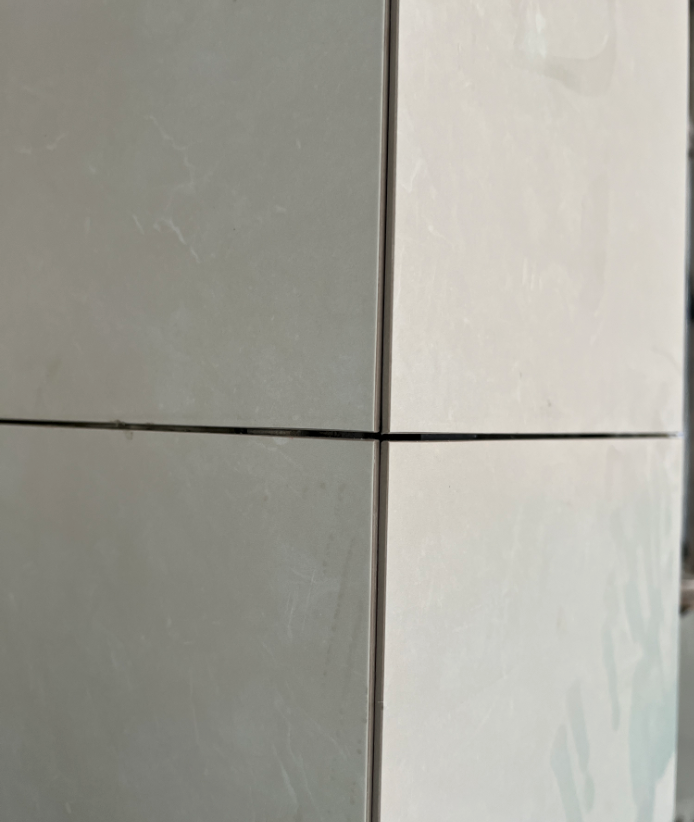 海棠角是瓷砖转角处的精致处理工艺,通过专业切割机将两块瓷砖边缘各切45度角,拼接后形成柔和的圆弧或斜面过渡,替代传统锋利直角。这种处理不仅能降低日常磕碰崩边的风险,避免灰尘污渍堆积,还能让转角衔接更流畅,提升空间格调。施工时需保证切割精准、切面平整无毛刺,切割后用细砂纸均匀打磨边缘,最后用美缝剂填缝密封;对于全抛釉等脆质瓷砖,需控制切割力度,必要时预留细缝防止崩裂。