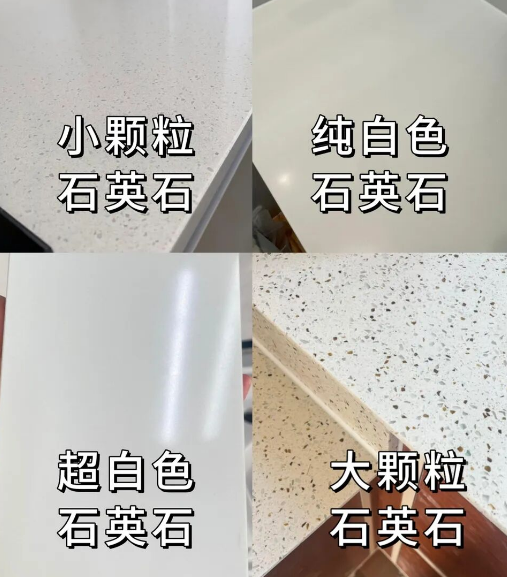 石英石因耐磨、耐污、易打理,是厨卫台面热门之选。按颗粒大小和颜色纯度可分为多种款式,颜值、质感及适配风格差异显著。下文对比4种常见石英石,帮你精准选款不踩雷。