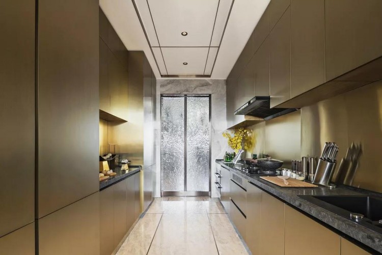 现代华丽新中式风格140平米四居室厨房橱柜装修效果图