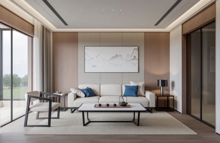 优雅清新中式风格220平米别墅书房背景墙装修效果图