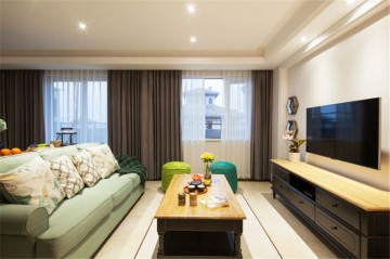 简约田园风格80平米小户型客厅窗帘装修效果图