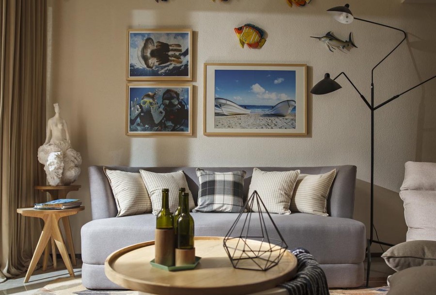 海洋欧式风格70平米公寓客厅背景墙装修效果图