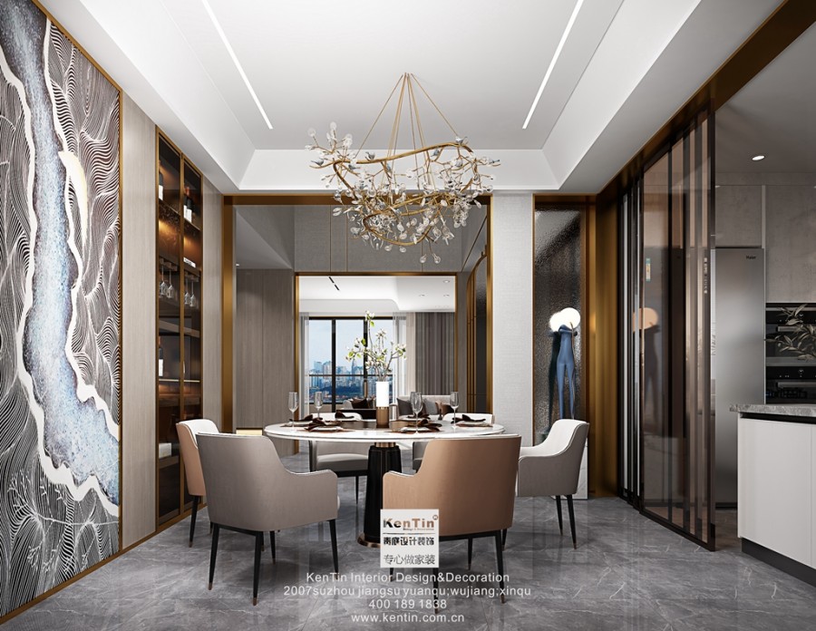 世茂铜雀台现代轻奢风格别墅餐厅装修效果图