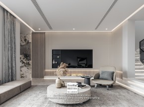 优山美地现代简约风格别墅客厅装修效果图