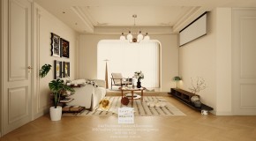 海德公园欧式奶油风复式客厅2楼装修效果图