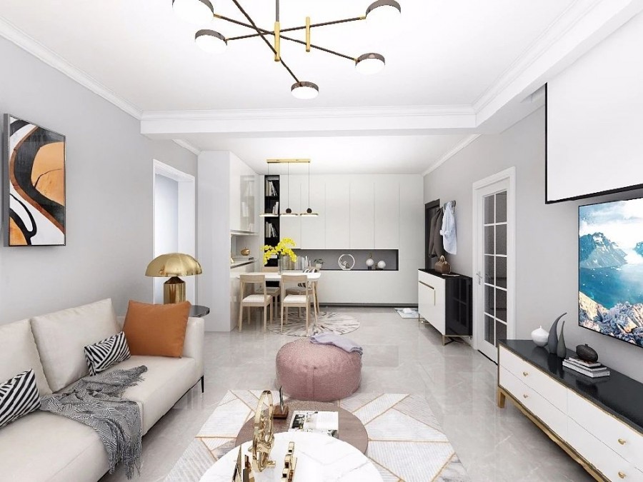 现代简约三居室客厅装修效果图