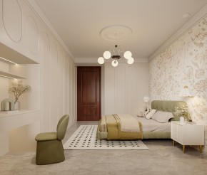 复古新中式三居室卧室装修效果图