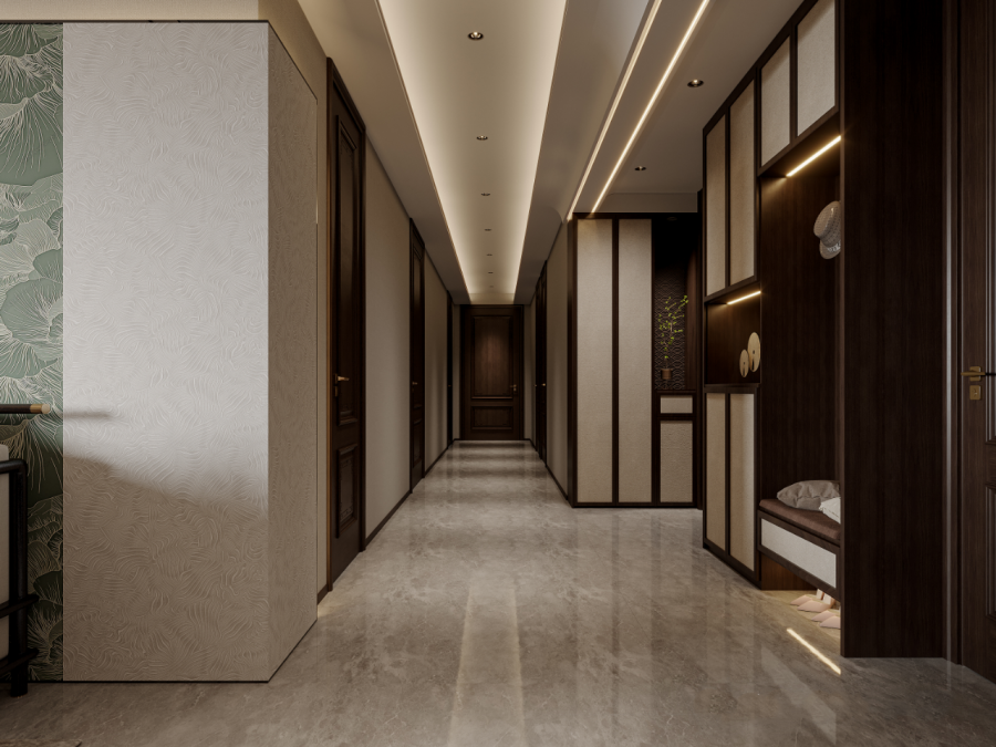 复古新中式三居室玄关装修效果图