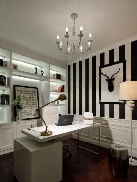 • 黑白时尚美式风格80平米一居室书房吊顶装修效果图