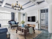 经典舒爽美式风格120平米三居室客厅吊顶装修效果图