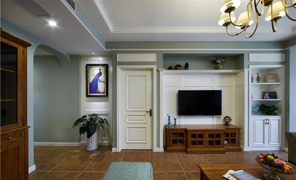 客厅作为待客区域,一般要求简洁明快,同时装修较其它空间要更明快光鲜 ,通常使用大量的石材和木饰面装饰;美国人喜欢有历史感的东西,这不仅反映在软装摆件上对仿古艺术品的喜爱,还反映在背景墙的整体效果上。