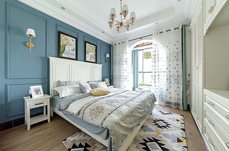 • 蓝色世界地中海风格130平米四居室卧室背景墙装修效果图