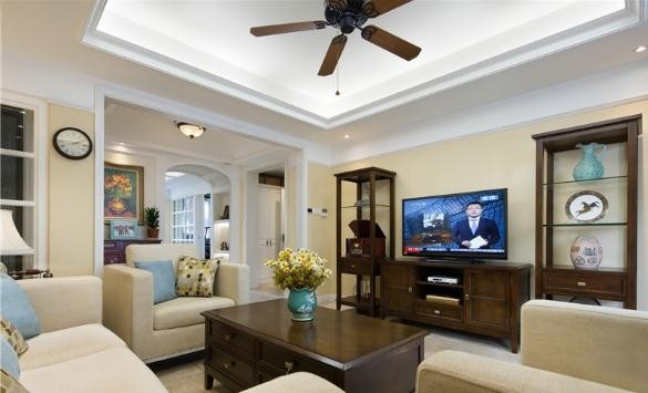美式的木质家具与装饰品,搭配上简约线条的天花纹路以及拱门设计,整个空间都显得舒适优雅。