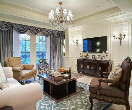 • 宽敞自然美式风格130平米四居室客厅窗帘装修效果图