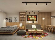 整洁时尚的北欧风格小户型卧室装修效果图 整洁时尚的北欧风格小户型厨房装修效果图 整洁时尚的北欧风格小户型电视背景墙装修效果图 整洁时尚的北欧风格小户型衣帽间装修效果图
