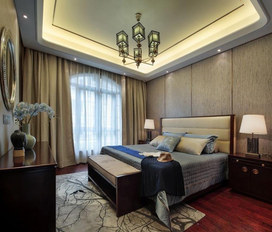 • 时尚现代中式风格100平米三居室卧室吊顶装修效果图