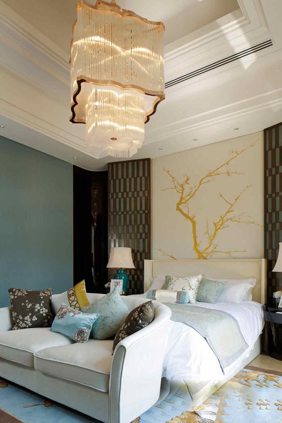 一楼的屋高满足了大气的场景效果,精致秀丽的巨幅花卉图成为了客厅视觉的中心。配套的家居软装温馨而唯美,玻璃茶几构造极具创意,利用建筑学的原理构筑了简约而精致的小风景。铁皮包覆的餐桌质感和深色原木餐椅有着别样的和谐,中央的水晶吊顶凸显了高贵的生活追求。