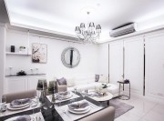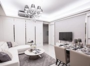 餐厅与客厅共存在同一空间,利用白色调与局部镜面作为妆点,让整个室内显得舒适、宽敞