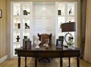 创意的圆形卧室床,大胆释放自己的睡姿,精致浪漫的布置打造出公主房般的感觉。书房对称设计显得十分庄重,原木大气的书桌摆放着几个石膏摆件,文艺气质油然而生。