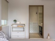 蓝色复古花砖与白色木百叶门片,在冷调的工业风外点缀了清新迷人的入门风景。结合收纳柜体一体成形的木质电视墙,依照使用机能分区规划,完整地融入了整体的风格设计中。位于屋中的餐厅是家人共同活动的主要区域,设计师安排多元展示收纳柜体,无论是大人还是小朋友都可轻松拿取架上物品。