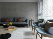 经典的黑白灰色系布置,雅致又温馨。餐厅素雅的使用了浅原木色的餐桌椅,线条简洁雅致。百叶窗可以智能的控制客厅采光,纯色的背景墙带着自然的纹路不加一丝点缀。