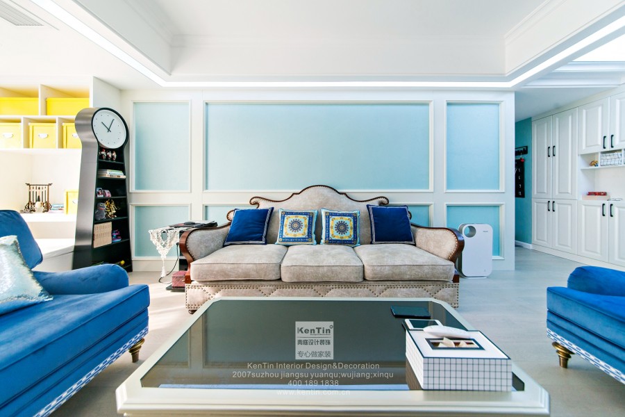 棕榈湾美式风格三居室装修实景案例沙发背景