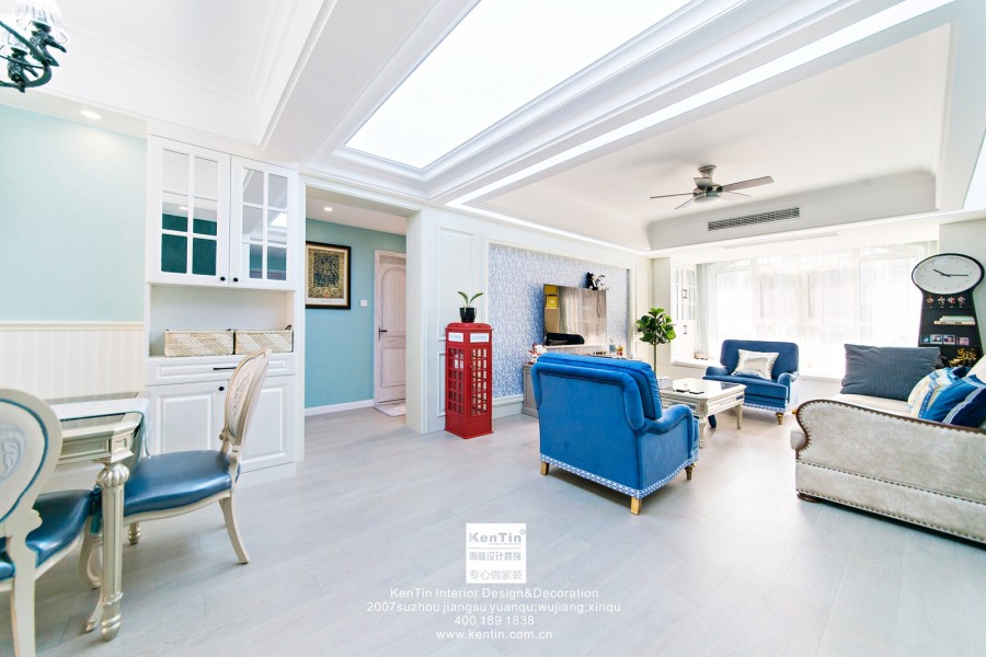 棕榈湾美式风格三居室装修实景案例客餐厅