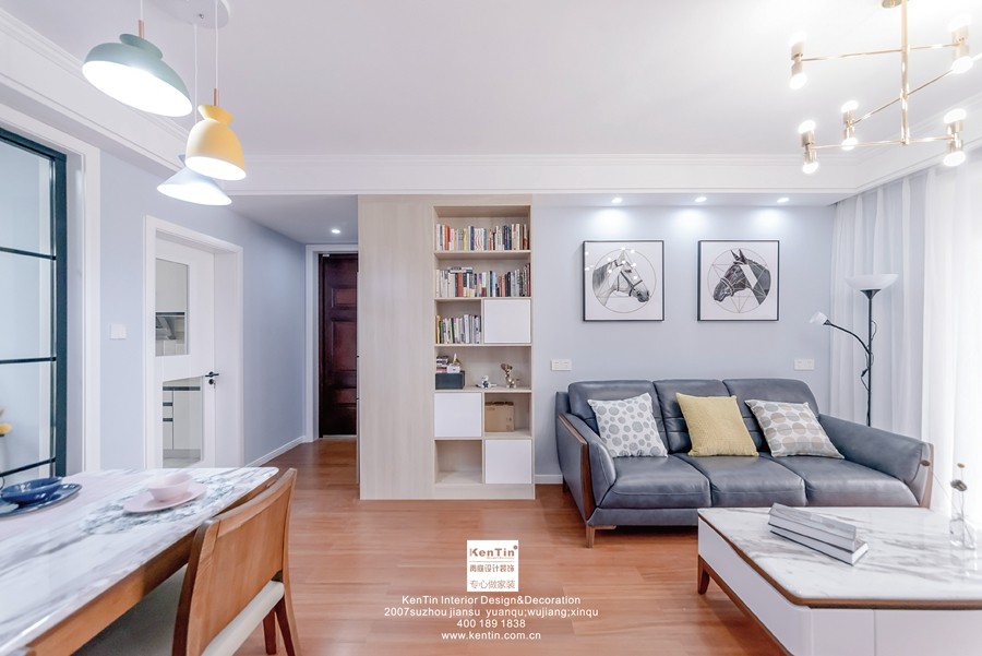 许悦湖花园北欧风格两居室客餐装修实景案例