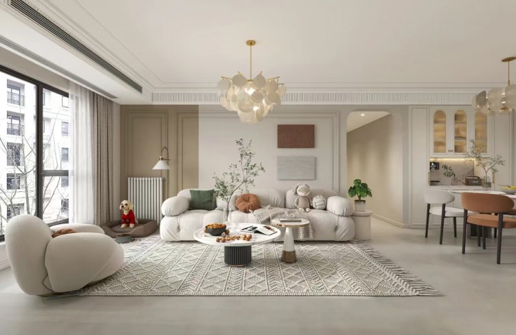 现代奶油风三居室装修效果图 5 张